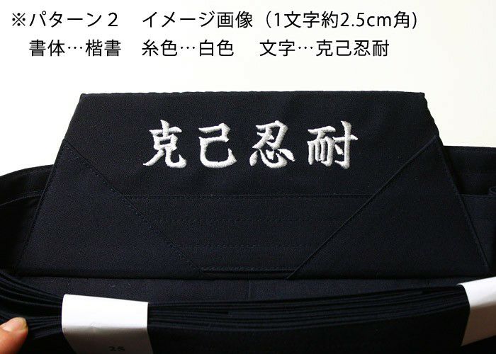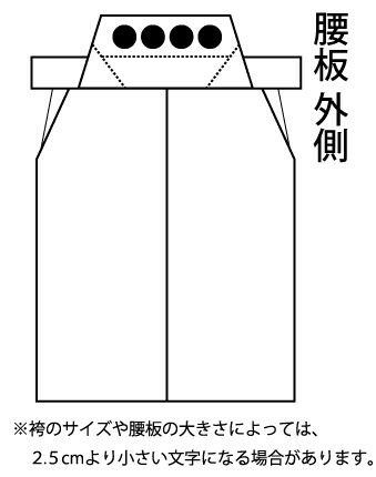 剣道袴 腰板 刺繍 ●袴腰板刺繍 パターン2(外側・上半分位置 4文字[2.5cm角 目安])