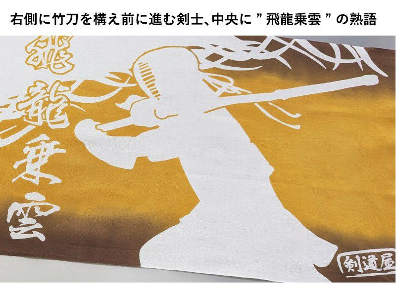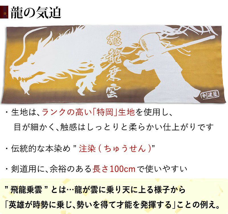 剣道屋オリジナル 面手ぬぐい本格染め●龍の気迫 ●金茶グラデーション