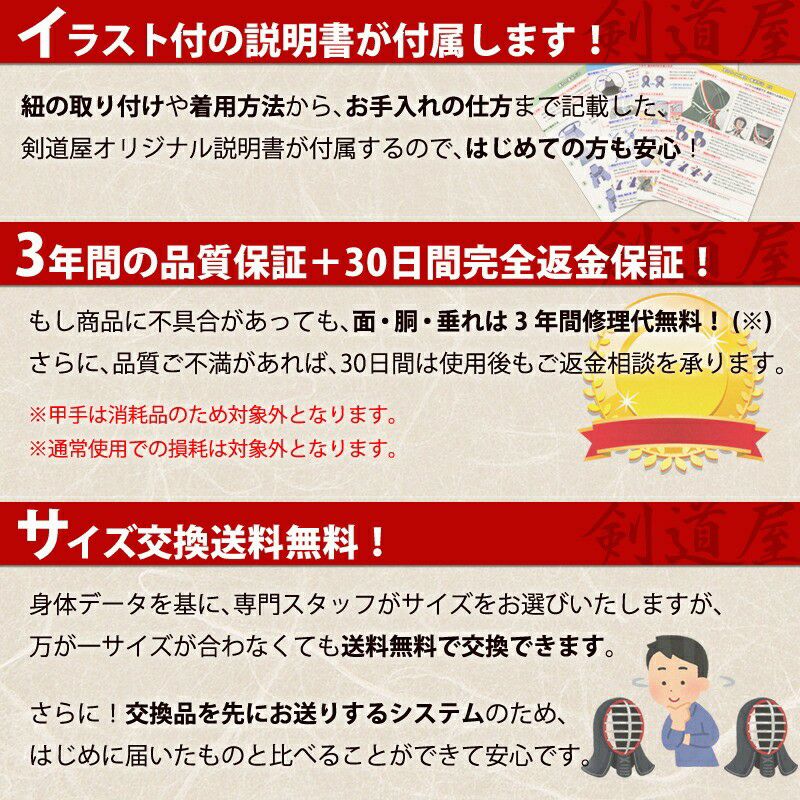 剣道用品専門店 剣道屋|防具サイズ交換無料で小中高生も安心