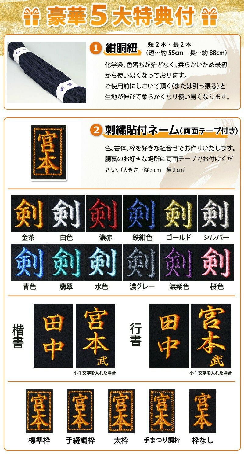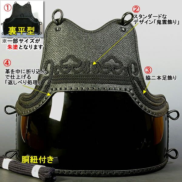 [剣道屋] 中高生向 胴単品 鬼雲飾り[ネーム付き][胴紐付き] 剣道 防具 胴 黒色 (子供~大人サイズ) 黒胴●鬼雲濃紺二本足 平型 [Dk] ●説明書