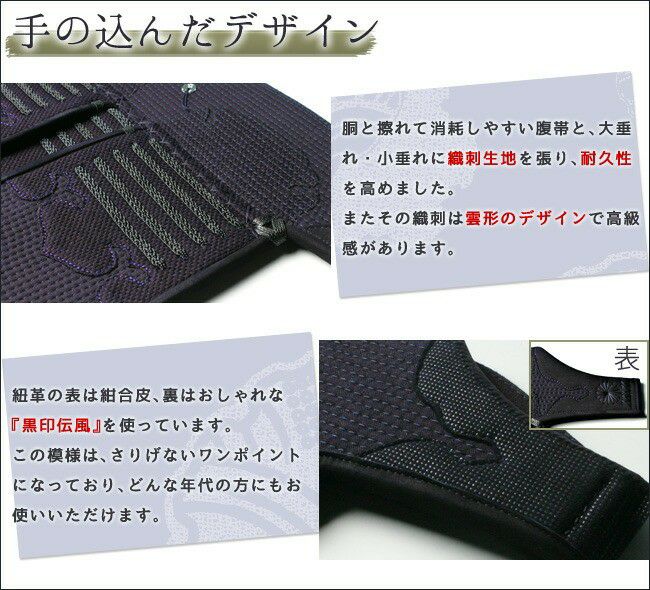 他の画像を見る 柔らかく動きにフィットするピッチ刺し垂れです。織刺しによる手の込んだ飾り。ネームもサービスで付いており、安心です。【送料無料】 【在庫限り・完売品】 剣道 垂れ ●5ミリジャストフィットピッチ刺し織刺雲形飾り[Tc]<サイズ限定> (●説明書) 価格: ¥ 11,330 税込 詳細を見る お気に入りに登録する