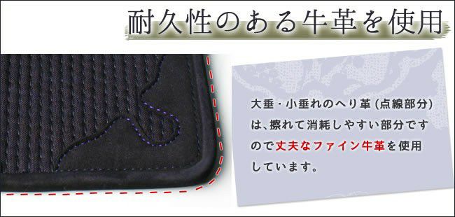 他の画像を見る 柔らかく動きにフィットするピッチ刺し垂れです。紺合皮による手の込んだ飾り。品格のある額刺し。刺繍ネームを含め豪華4大特典付きで大変お得!【サイズ交換送料無料・送料無料】 [剣道屋] 中高生・一般向 垂れ 5ミリ額刺しクラリーノ 雲形張革 へり牛革 剣道 防具 垂れ●5ミリピッチ刺しDX[Tb] ●説明書 価格: ¥ 16,610 税込 詳細を見る お気に入りに登録する