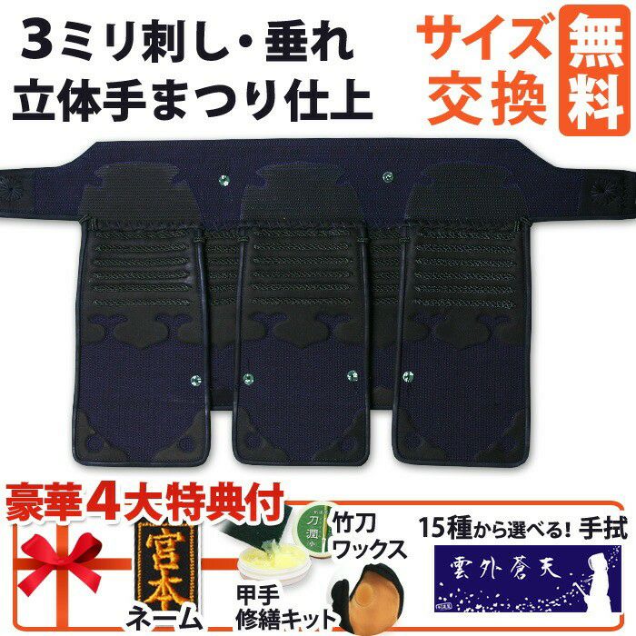 他の画像を見る 飾り部分が手まつり仕上げとなり、非常に高級感がある垂れ。すれ止め・へり革などは、丈夫な牛革を使用。刺繍ネームを含め豪華4大特典付きで大変お得!【サイズ交換送料無料・送料無料】 [剣道屋] 垂れ単品 3ミリ刺し 経験者向 立体感ある手まつり仕上げ 大垂れ小垂れ6段飾り 剣道 防具 垂れ●3ミリ刺し[Ta] ●説明書 価格: ¥ 18,810 税込 詳細を見る お気に入りに登録する