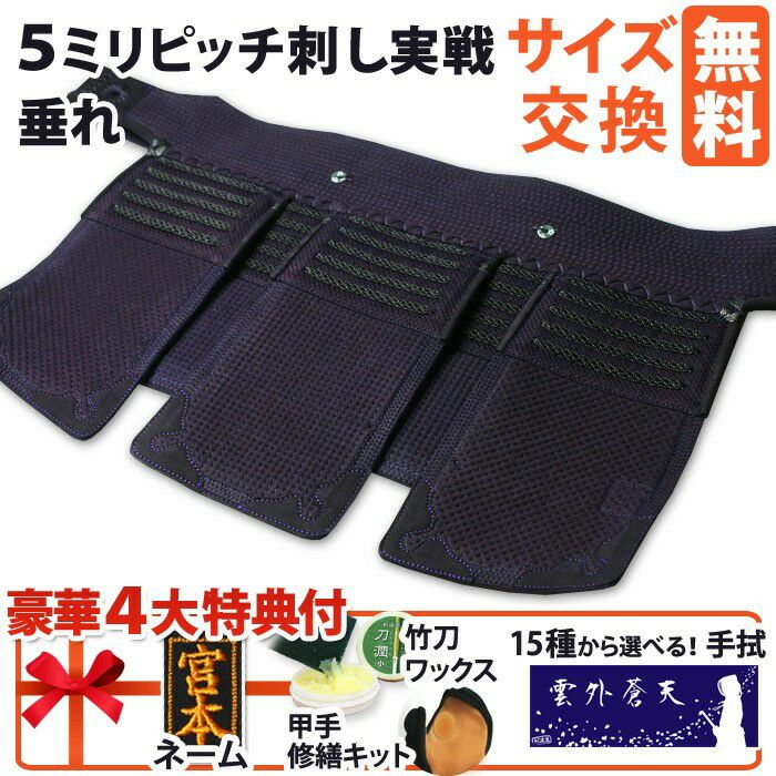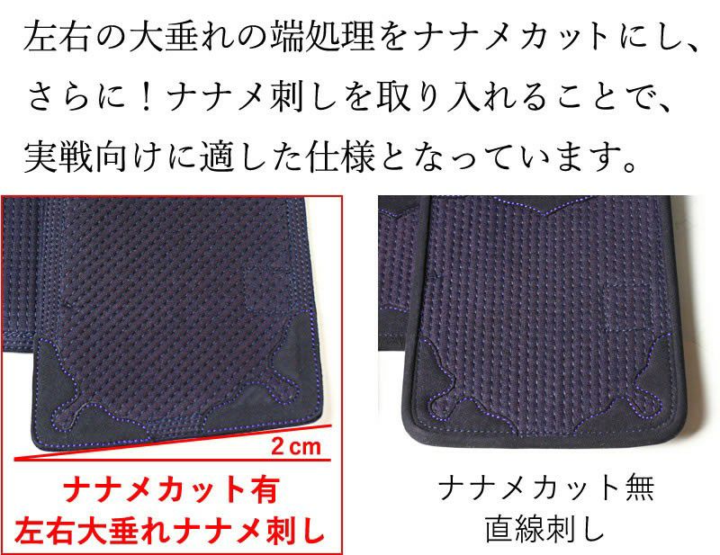 実戦型垂れ単品。左右大垂れをナナメカット&ナナメ刺し仕様にし、動きやすさを追求! [剣道屋] 実戦型 垂れ単品(経験者向)ナナメカットの軽量垂れ布団  剣道 防具 垂れ●5ミリピッチ刺し実戦型[Tp] ●説明書