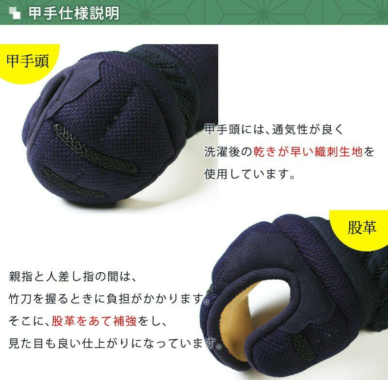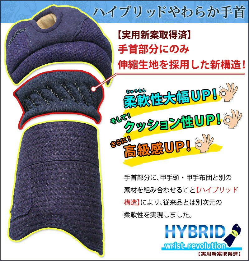 剣道防具 小手 甲手・6ミリピッチ刺し「ハイブリッドやわらか手首 速洗・速乾」送料無料