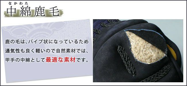 そして、手の内は伝統の鹿革。中綿にも鹿毛の本格派。