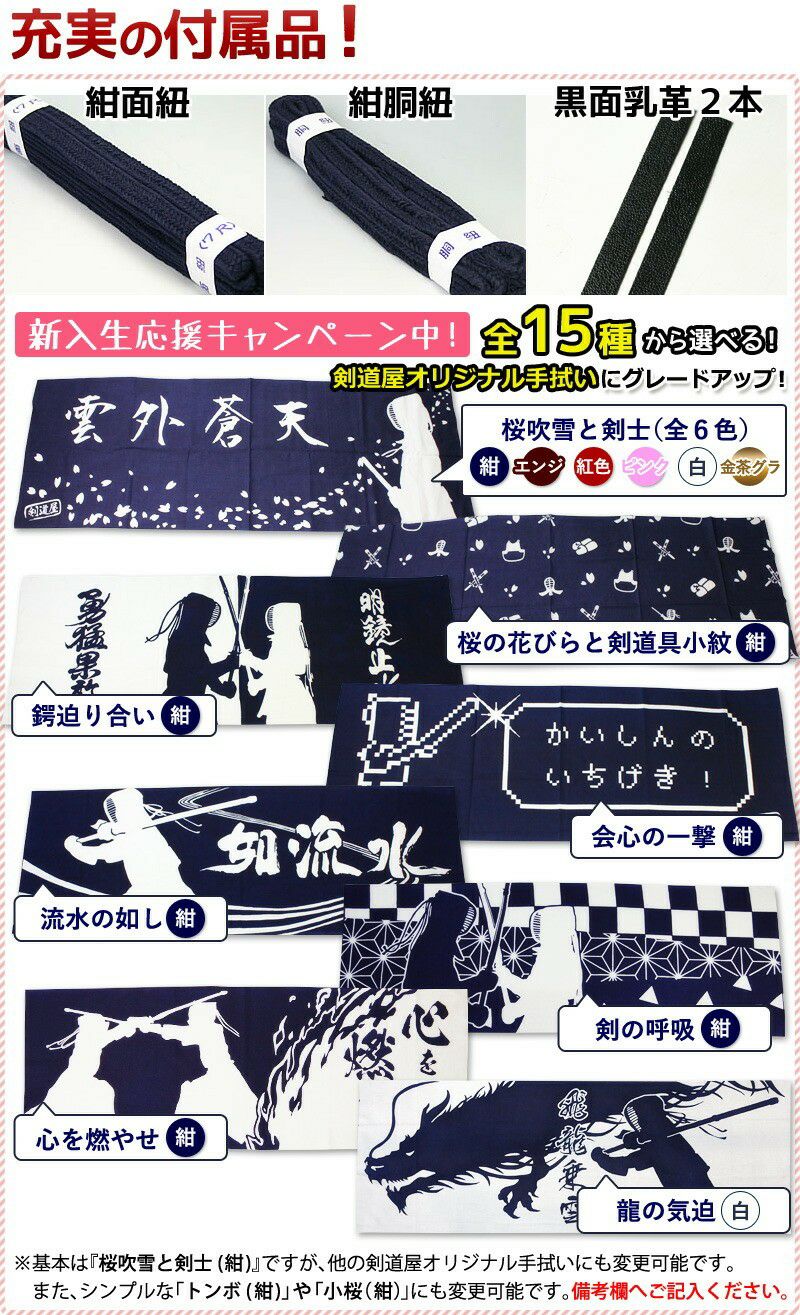 他の画像を見る 【経験者向け】面 【新入生応援】実戦型 防具一式 全15点『紅玉』5ミリ刺しJFP PROセット ★面手拭が選べる ★小手3種選択・洗えるor握り重視or本格鹿革 ★防具のサイズ交換は送料無料 ●3年保証書・説明書付 価格: ¥ 68,970 税込 詳細を見る お気に入りに登録する