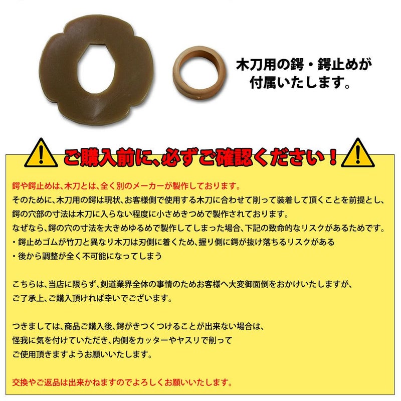 【日本製】 白樫木刀(中刀) 鍔、鍔止め付 【 剣道 白樫 中刀 素振り 審査 護身 】