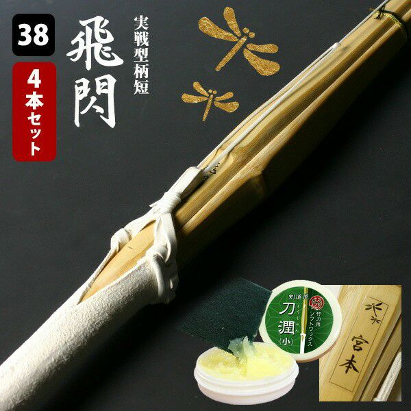 【安心交換保証付】剣道 竹刀 「飛閃」<SSPシール付>実戦型胴張柄短・真竹吟風W仕組み完成竹刀 38サイズ 4本セット