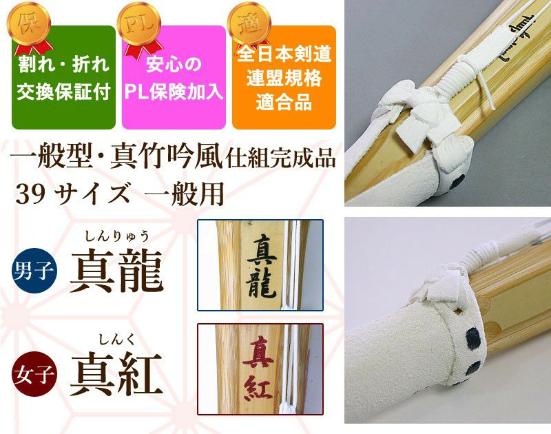 9-12本目の竹刀サイズ●真龍:39男子×4本