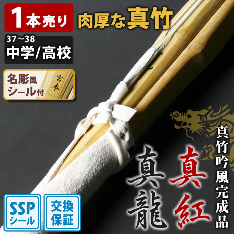 【交換保証付】 真竹完成品 『真龍・真紅』 1本売り 中学生・高校生[37-38サイズ] 肉厚で柔軟な真竹 剣道 竹刀【SSPシール付/名彫シール付】 37男子 37女子 38男子 38女子