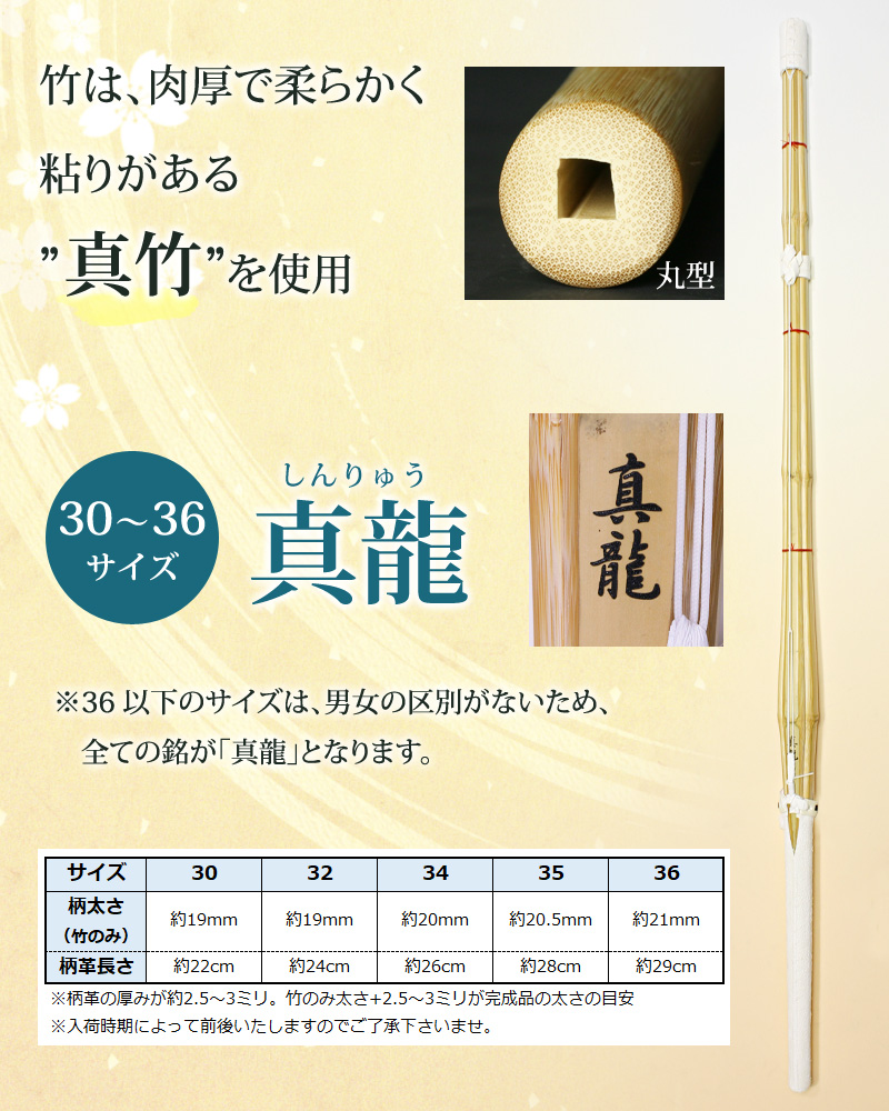 2本目の竹刀サイズ:●真龍:36(小学生用)×1本