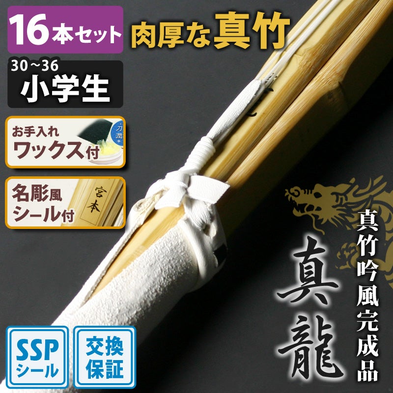【交換保証付】 真竹完成品 『真龍』 16本セット 小学生用 [30-36サイズ] 肉厚で柔軟性に優れた真竹 剣道 竹刀 【SSP付/名彫シール付/お手入れワックス付】 幼年 小学生 子供