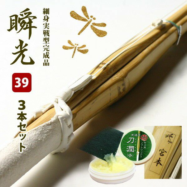 【新基準対応】細身実戦型・吟風W仕組み完成竹刀<SSPシール付> 39サイズ・大学、一般用【安心交換保証付】 ●3本セット