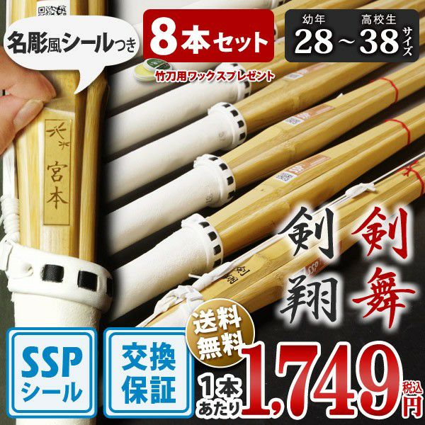 【安心交換保証付】剣道 竹刀 一般型吟風仕組竹刀 剣翔・剣舞<SSPシール付> 28~38サイズ 小学生~高校生用 8本セット(中学生 37 高校生 38)