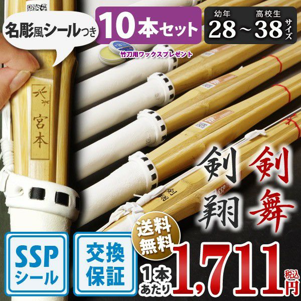 他の画像を見る 【安心交換保証付】剣道 竹刀 一般型吟風仕組竹刀 剣翔・剣舞<SSPシール付> 28~38サイズ 小学生~高校生用 8本セット(中学生 37 高校生 38) 剣道屋特価 ¥ 13,992 税込 詳細を見る お気に入りに登録する