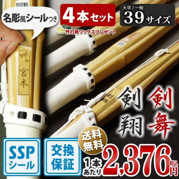 【新基準対応】剣道 竹刀 一般型吟風仕組竹刀 剣翔・剣舞<SSPシール付>39サイズ 大学生・一般用 4本セット【安心交換保証付】