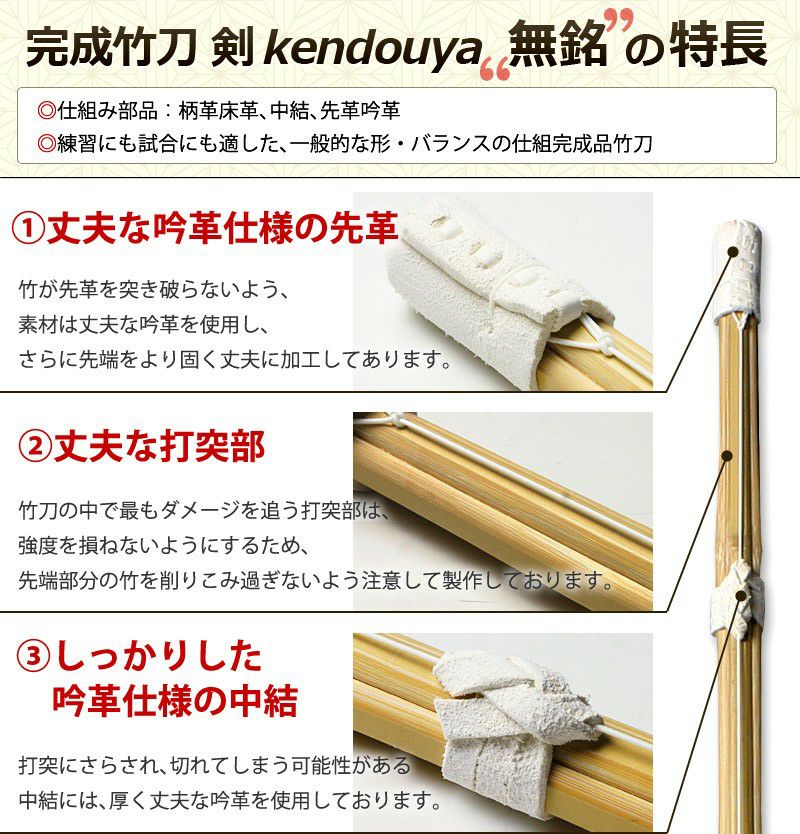 使用していた竹刀が壊れたので、1年生の息子に買いました。 名前シールにとても喜んでいました。 おすすめです。