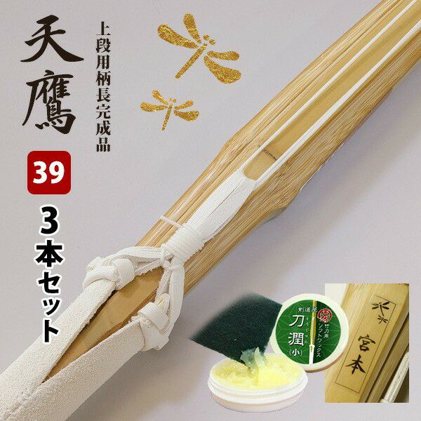 【安心交換保証付】 剣道 竹刀 上段用柄長・吟柄風W仕組み完成竹刀●天鷹<SSPシール付>●39男子サイズ 大学・一般用●3本セット(39 大学生 男子)