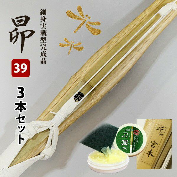 【SSPシール付・安心交換保証付】 ●3本セット 剣道 竹刀 細身実戦型・吟風W仕組み完成竹刀 ●昴 ●39男子サイズ 大学・一般用 送料無料 まとめ買い