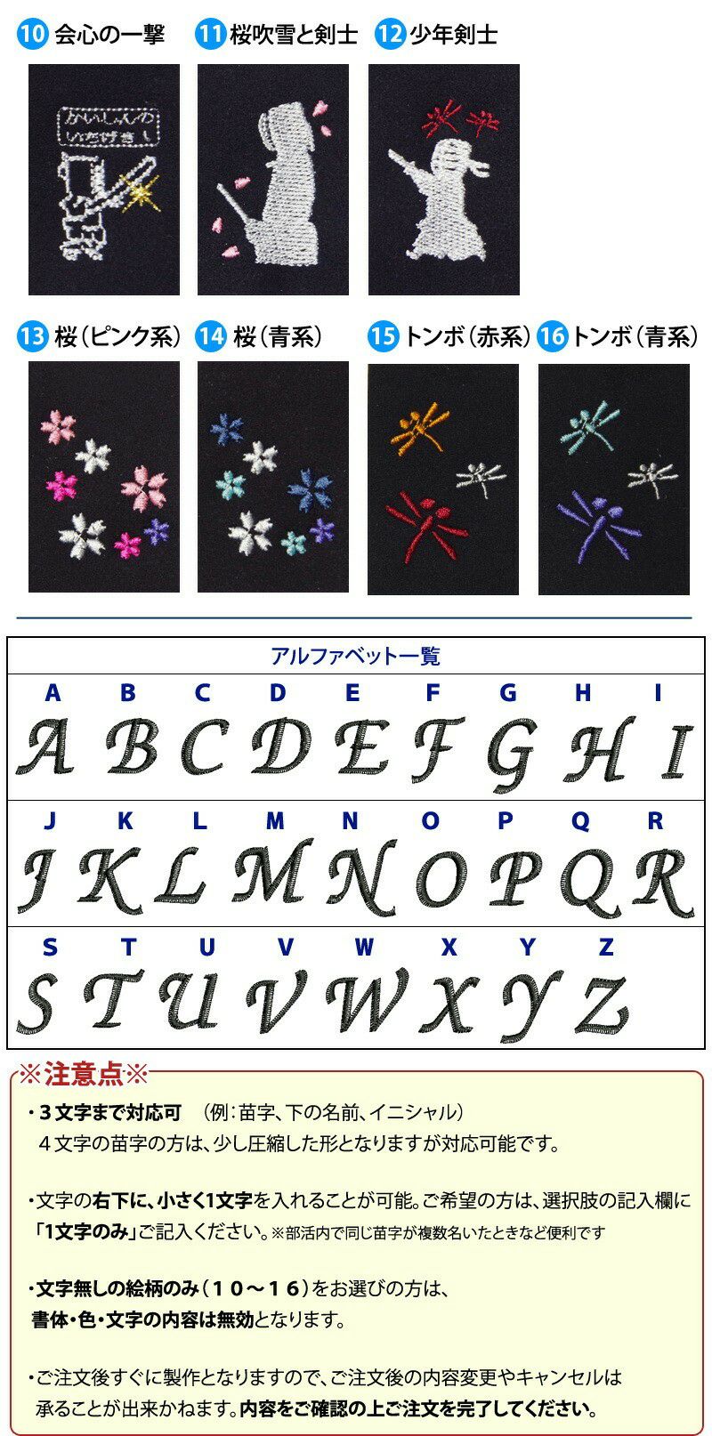 ◇《b10》刺繍ネーム書体:行書