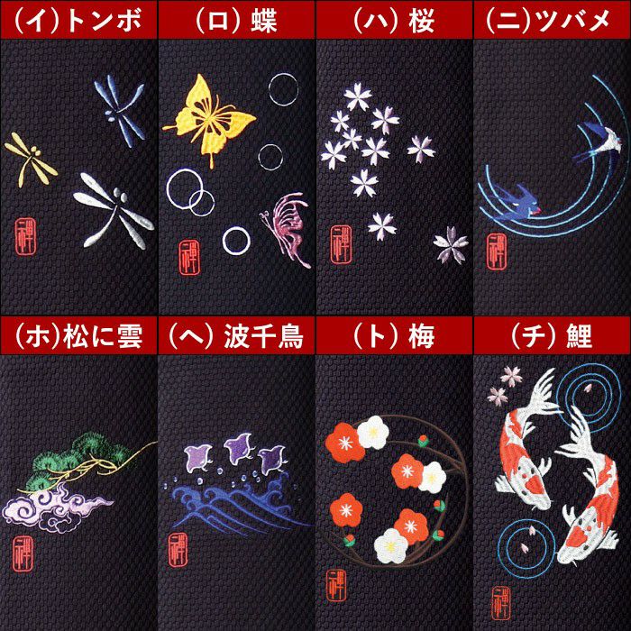 さらに、8種類の和風刺繍デザインからお好みのものをお選び下さい!