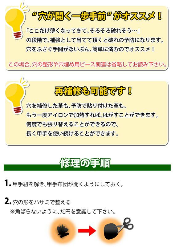 比較的簡単に小手の穴を塞ぐ事が出来て、ありがたいです。