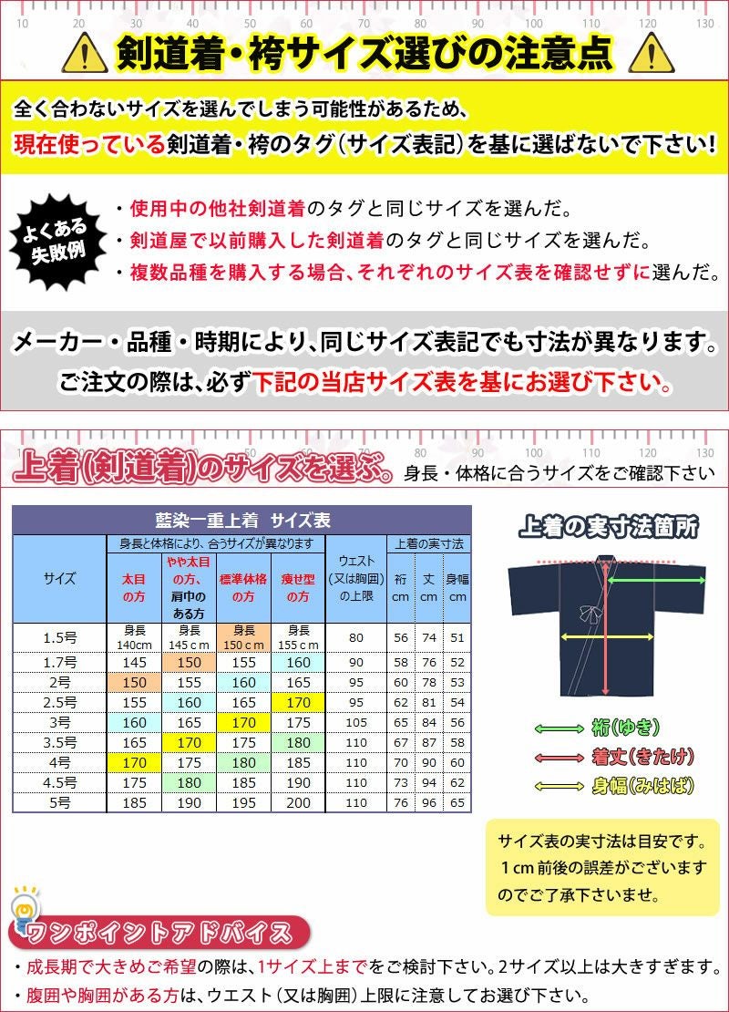 他の画像を見る 本格正藍染剣道着がこの価格。ジャージも良いですが、一度お試し下さい。使い込むほどに良い色になってまいります。手放せない一着になること請け合いです。 [剣道屋] 正藍染 一重剣道着 綿100% 審査や試合に最適 [剣kenoduyaシリーズ] ★刺繍5文字無料 ★竹刀ワックス付 ●正藍染一重剣道着 (剣道衣・胴着) 価格: ¥ 6,950 税込 詳細を見る お気に入りに登録する