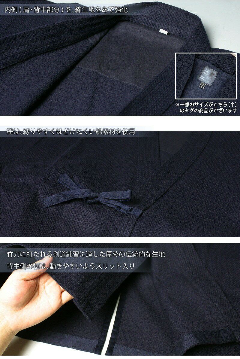 (特徴)竹刀に打たれる剣道に適した、厚めの伝統的な生地です。練習はもちろん、試合にもお使い頂けます。