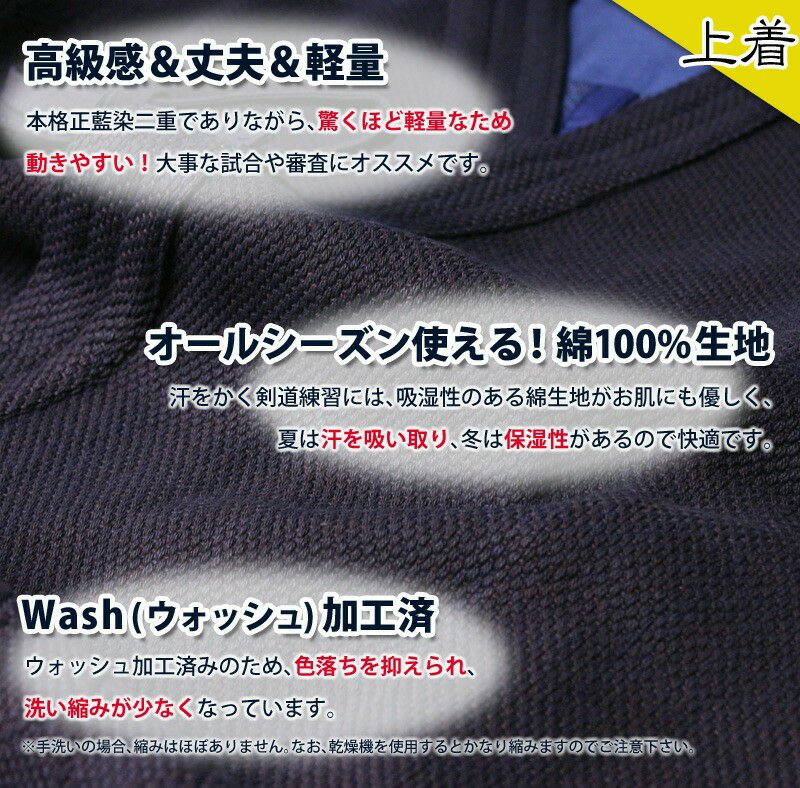 他の画像を見る 本格的な正藍染二重剣道着。高級感&丈夫な二重織り生地。しかも、驚くほど軽量なため、動きやすい!大事な試合や、審査におすすめいたします。 [剣道屋] 正藍染 二重剣道着 綿100% 審査や試合に最適 実戦型の軽量タイプ [剣kenoduyaシリーズ] ★刺繍5文字無料 ★竹刀ワックス付 ●特製正藍染二重・実戦型剣道衣 (剣道衣・胴着) 価格: ¥ 11,889 税込 詳細を見る お気に入りに登録する