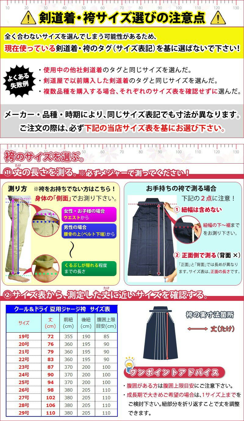 他の画像を見る 暑い季節だけでなく、冬にも人気のジャージ袴!軽快に動け、お手入れもラクラク。一度使ったら、その爽快感の虜になること間違いなし!送料&刺繍5文字無料でお得! [剣道屋] 夏用 ジャージ 剣道袴 『クール&ドライ』 紺色 ★5文字無料+ワンポイント刺繍無料 ★竹刀ワックス付 ●「クール&ドライ」ジャージ袴 剣道屋特価 ¥ 5,990 税込 詳細を見る お気に入りに登録する