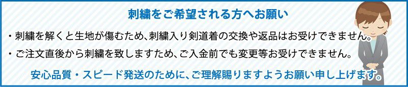 他の画像を見る 送料無料!それぞれ5文字まで刺繍も無料!サイズが心配な方は、刺繍無しならサイズ交換も可能。安心・お得な剣道着通販なら、剣道具専門店の剣道屋にお任せ下さい。 [剣道屋] 上下セット ●「紺一重剣道着+新特製テトロン剣道袴・黒」剣道着セット ★各5文字無料+ワンポイント刺繍無料 ★オリジナル面手拭プレゼント ★竹刀ワックス付 剣道屋特価 ¥ 7,797 税込 詳細を見る お気に入りに登録する
