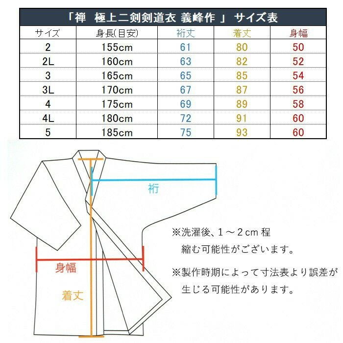 【加工所取寄せ品】 剣道着 二重 武州正藍染 ●[禅]極上二剣剣道衣 義峰作