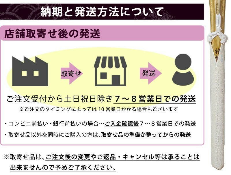 【加工所取寄せ品】剣道 竹刀《●大海別作》真竹立面削り 柄太柄短胴張完成品 吟柄風W床仕組 完成品竹刀●39男子サイズ 柄28mm [TM-4]<SSPシール付>