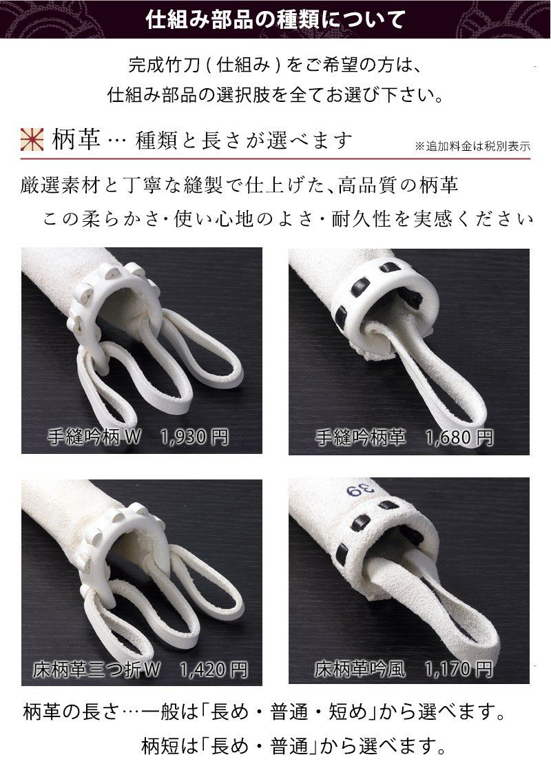 柄革の種類※柄革ご選択時はツル・中結の他、先ゴム・先革・調整革が付属します。