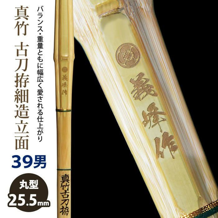 【加工所取寄せ品】【新基準対応】 竹刀 《●義峰作 Gihosaku》真竹古刀拵細造 立面削り 39サイズ 柄25.5mm [HM-05] <SSPシール付>