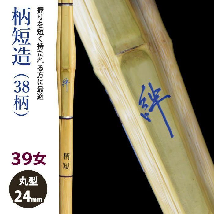 【加工所取寄せ品】【新基準対応】 竹刀 《●絆 Kizuna》柄短造(38柄) 39女子サイズ 柄24mm [HK-24] <SSPシール付>