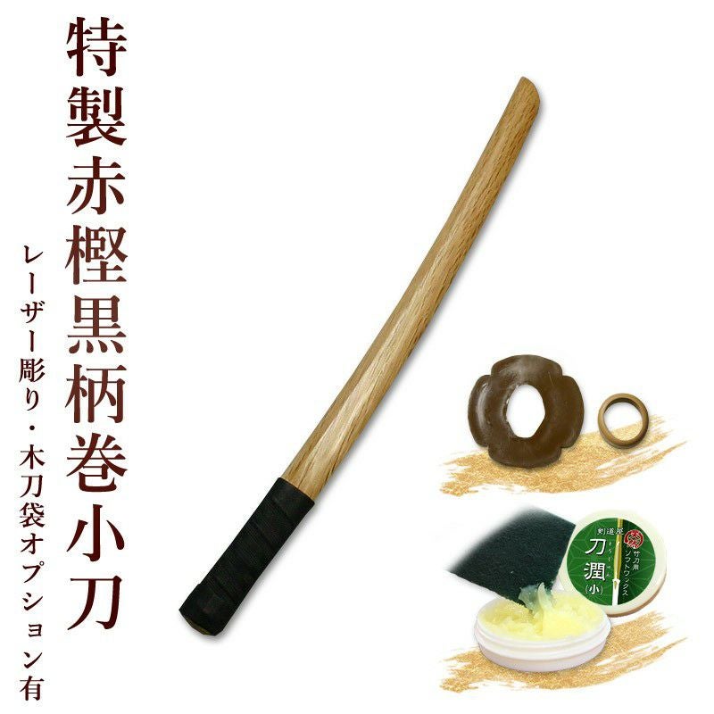 ●特製赤樫黒柄巻木刀(小刀)[W-GA3]