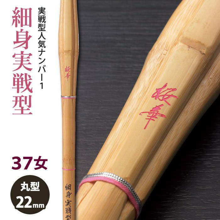 【加工所取寄せ品】【新基準対応】 竹刀《●桜華 OUKA》 細身実戦型 37女子サイズ 柄22mm [K1I-W] <SSPシール付>