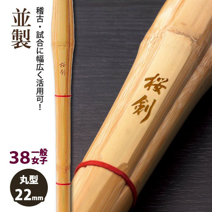 【加工所取寄せ品】【新基準対応】 竹刀《●桜剣 OUKEN》 並製 38一般女子サイズ 柄22mm [K1A-W] <SSPシール付>
