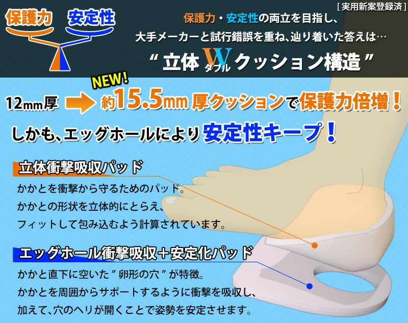 他の画像を見る 驚きの衝撃吸収力と抜群の安定感を生み出す!試行錯誤を重ね辿り着いた「立体Wクッション構造」カラーは黒と紺の2色をご用意。 ●W(ダブル)ガード・かかとサポーター 約15.5mm 剣道屋特価 ¥ 2,988 税込 カートに入れる お気に入りに登録する