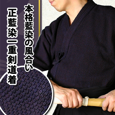 武州正藍染。実戦に最適な一重剣道衣。3Dデザイン・背継加工・ウォッシュ加工で柔らかさUP+色止めがされています。