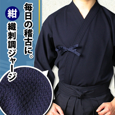 お求めやすい価格の定番ジャージ剣道着。お手入れ簡単で毎日の稽古用に人気の剣道着です。光沢感を抑えた織刺調でやわらかな風合い。