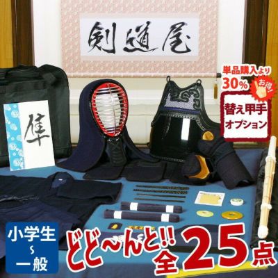 【新入生応援】小中高生向 剣道フルセット全25点『隼』[防具一式・剣道着・竹刀・バッグ] ★お好きな面手拭をプレゼント\キャンペーン中/ ★防具サイズ交換送料無料 ●名彫シール ●3年保証書・説明書付