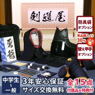 【新入生応援】中高生向防具一式 全15点『蒼龍』5ミリ刺しJFPスタンダード ★面手拭が選べる ★小手3種選択・洗えるor握り重視or本格鹿革 ★防具のサイズ交換は送料無料 ●3年保証書・説明書付のレビュー