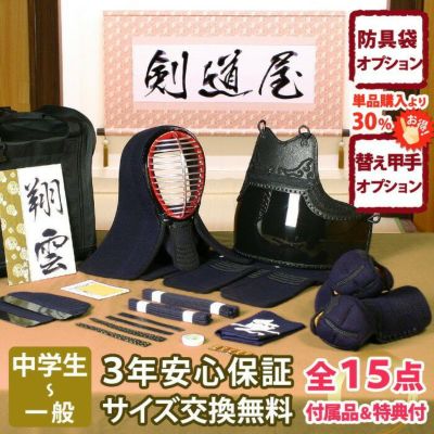 【新入生応援】中高生向防具一式 全15点『翔雲』5ミリ刺しJFPシンプルセット ★面手拭が選べる ★小手3種選択・洗えるor握り重視or本格鹿革 ★防具のサイズ交換は送料無料 ●3年保証書・説明書付のレビュー