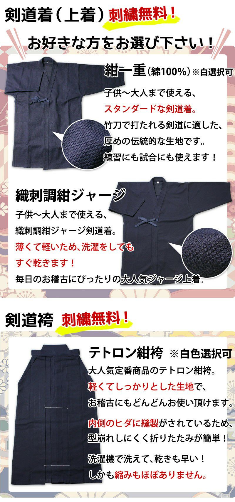 他の画像を見る 小学生~大人までお使いになれる6ミリピッチ刺し剣道防具入門セット。防具袋・面紐・面乳革・胴紐・面手拭はもちろん、剣道着や竹刀もセットに。送料無料 サイズ交換送料無料 【新入生応援】小中高生向 剣道フルセット全25点『楓』[防具一式・剣道着・竹刀・バッグ] ★お好きな面手拭をプレゼント\キャンペーン中/ ★防具サイズ交換送料無料 ●名彫シール ●3年保証書・説明書付 価格: ¥ 64,460 税込 詳細を見る お気に入りに登録する