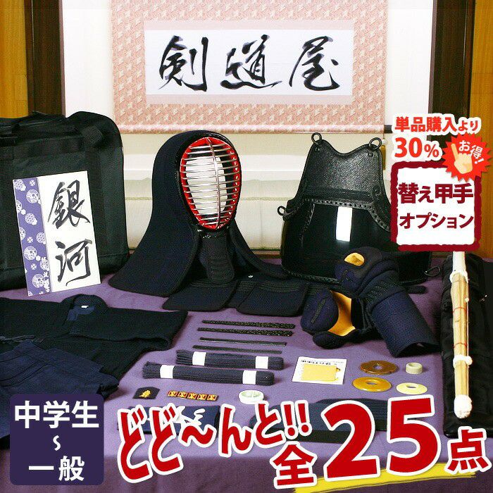 他の画像を見る 甲手(小手)が2組付いてくる人気の剣道防具セットに、剣道上着・剣道袴・竹刀・竹刀袋・木刀などの剣道具をプラスし更に内容充実。送料無料・サイズ交換も無料で安心。 【新入生応援】中高生向 剣道フルセット全25点『銀河』5ミリ刺しJFPスタンダード [防具一式・剣道着・竹刀・バッグ] ★洗える小手他3種選択 ★防具のサイズ交換は送料無料 ●名彫シール ●3年保証書・説明書付 価格: ¥ 73,260 税込 詳細を見る お気に入りに登録する