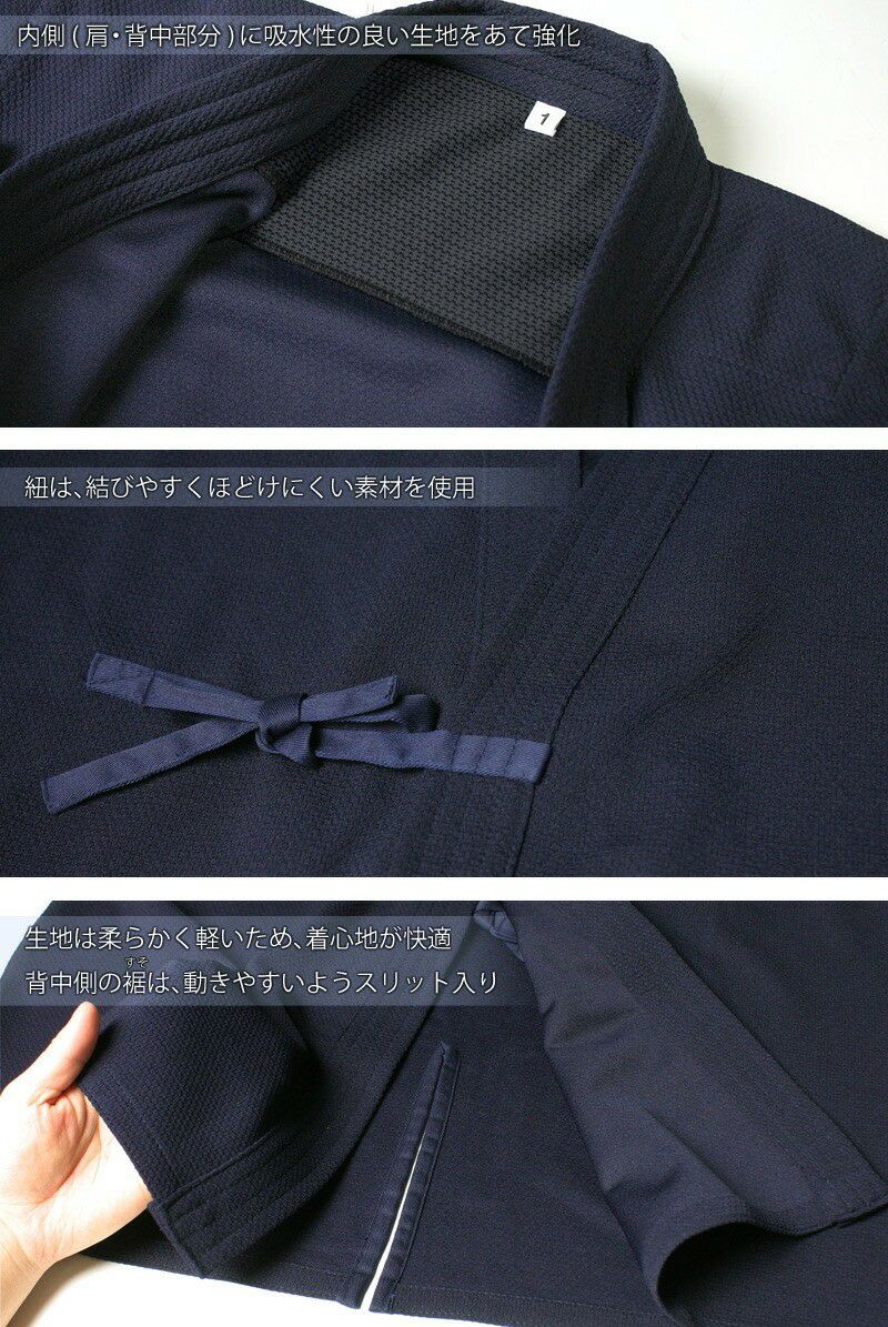 他の画像を見る 驚きの吸汗性・通気性抜群のジャージ生地を使用。薄いのに透けにくいので安心です。夏の稽古の必需品になること間違いなし!送料無料・刺繍5文字まで無料です。 [剣道屋] 紺色 上下セット 夏用 ●「クール&ドライ」ジャージ剣道着セット ★各5文字無料+ワンポイント刺繍無料 ★オリジナル面手拭付 ★オリジナル面手拭プレゼント ★竹刀ワックス付 価格: ¥ 10,490 税込 詳細を見る お気に入りに登録する