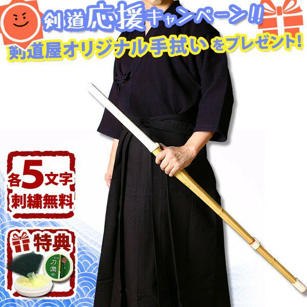 他の画像を見る 大人気剣道着セットです!刺繍もそれぞれ5文字無料&送料無料!着心地・動きやすさ・お手入れのしやすさ、全てが揃って、価格も大変リーズナブル。 [剣道屋] 上下セット ●「織刺調・紺ジャージ剣道着+新特製テトロン剣道袴・黒」剣道着セット 子供~大人サイズ ★各5文字無料+ワンポイント刺繍無料 ★オリジナル面手拭プレゼント ★竹刀ワックス付 価格: ¥ 7,298 税込 詳細を見る お気に入りに登録する